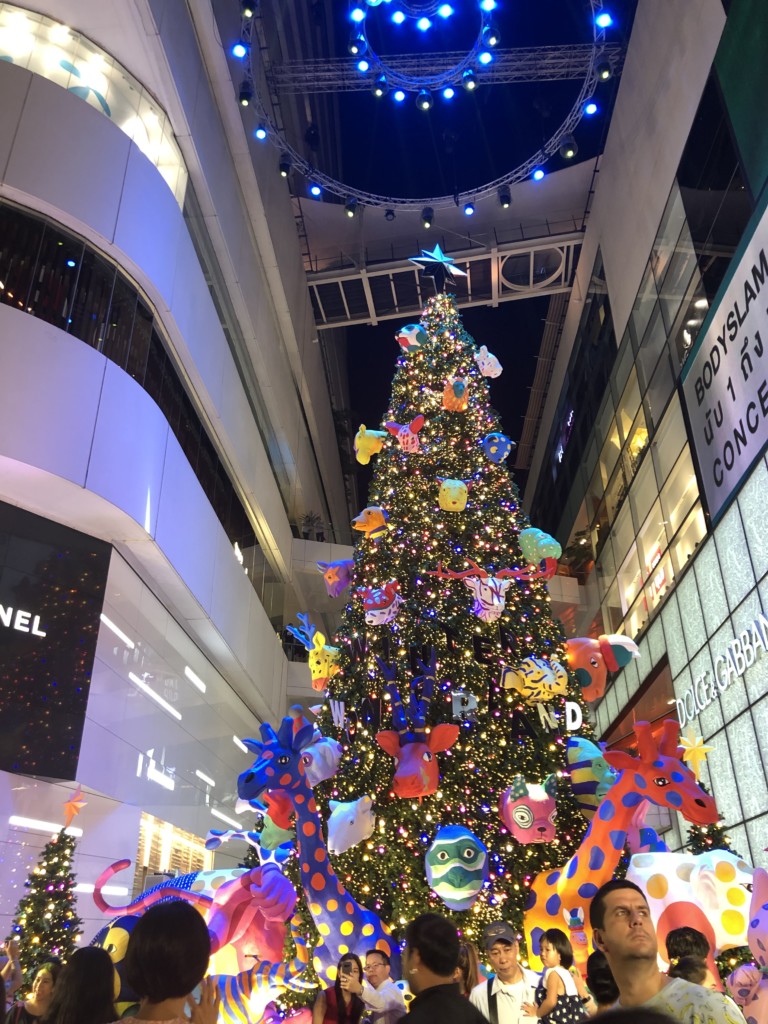 「クリスマスイルミネーション=寒い時期」という感覚の私にとってはやっぱり不思議な感覚です。コーヒーショップでクリスマス限定ドリンクを注文して「アイス?」と聞かれるのも、まだ慣れません(笑) 小学生の頃にオーストラリアのホームステイ先でクリスマスのホームビデオを見せてもらったときの違和感を思い出しています。タイのサンタもサーフィンで来るのでしょうか…?
