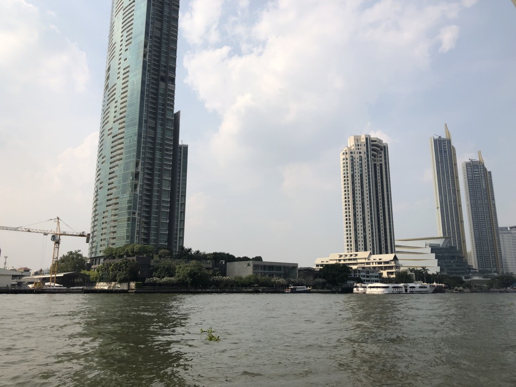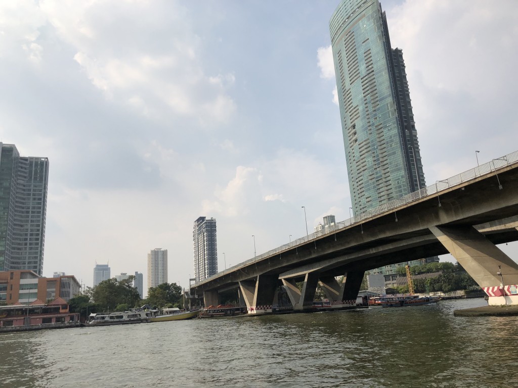 空港から契約したコンドミニアムまでの道のりの景色も、高層ビルがたくさん建ち並んでいて、最初のイメージとの違いに驚きました。地震のない国だそうで、高層ビルが建てやすいとのことです。私が住んでいるコンドミニアムは37階建てくらいですが、これでも低い方だと聞きました。大きなモールもあり、バスも電車も6分おきくらいで来ます。大きな川(チャオプラヤー川)があるので、交通手段として船もあり、交通の便はとても良いです。大学の近くにも駅ができているところで、さらに便利になると思います。当然ですが、道もちゃんと舗装されていました!