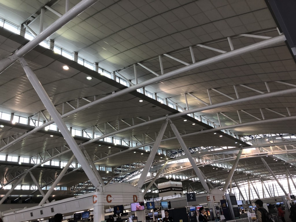 私の出身は熊本なので、タイへの直行便がある最も近い空港は福岡空港です。熊本から新幹線で福岡へ行き、タイへの飛行機に乗り込みました。大抵のものはタイで買える、ということは調べてあったのですが、心配性の母が洗剤やらタオルやら詰め込み、一週間分の母と弟の着替え等も含めた結果、私、母、弟の三人に対してスーツケース4つと大きなバッグ2つ、リュック2つの大荷物に…。どうにか運ぶことができました。ビザは特に取得せず、タイについてから変更しました。